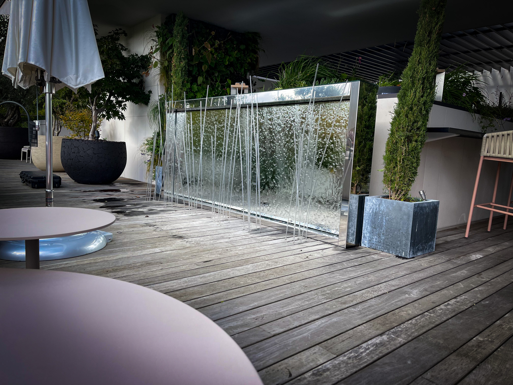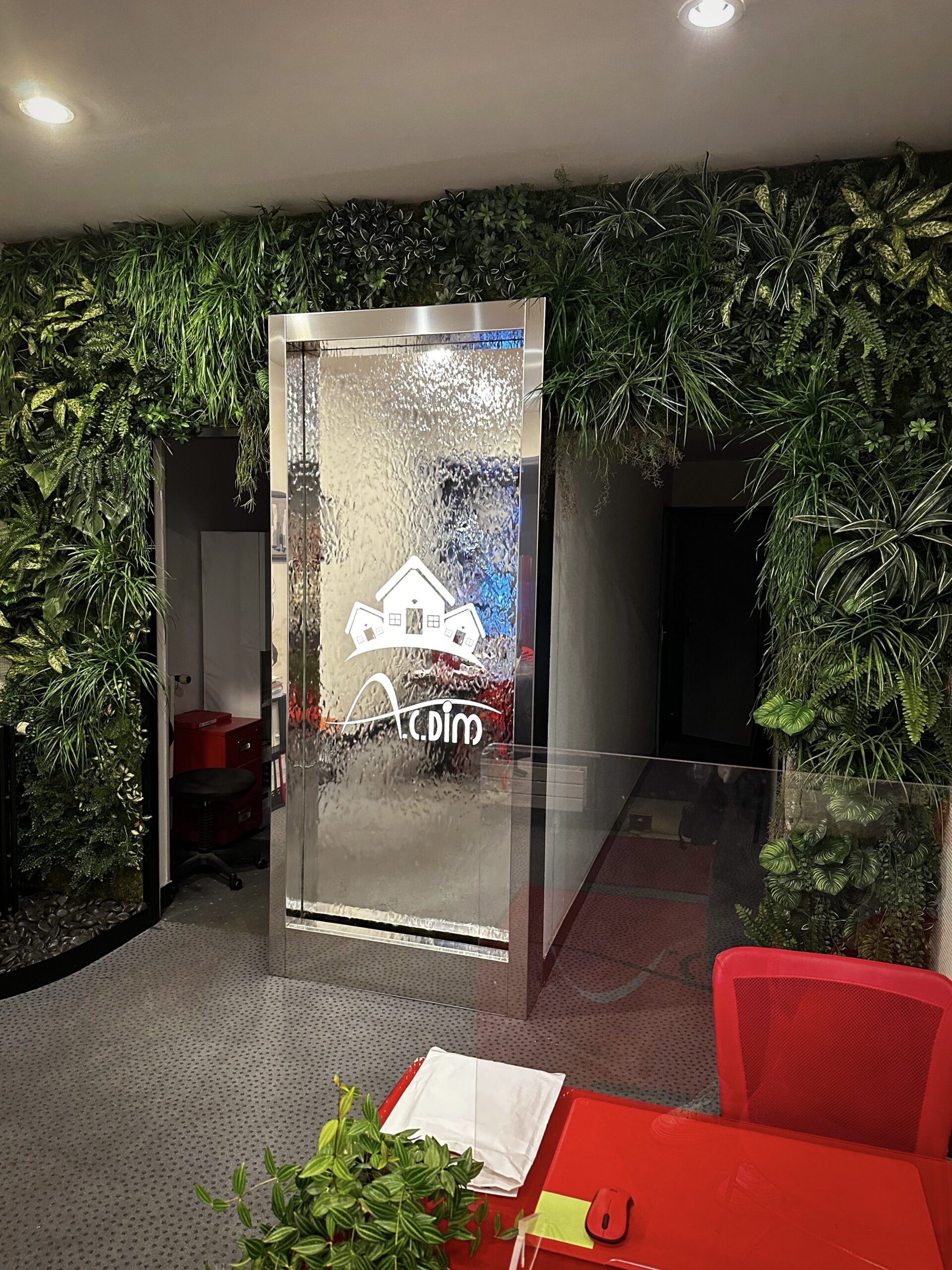 A mirror water wall with sandblasting allows you to display a message or visual design that captures everyone’s attention. The unique result enhances the atmosphere of your interior, restaurant, hotel, boutique, or even your outdoor spaces such as a garden, terrace, or storefront.