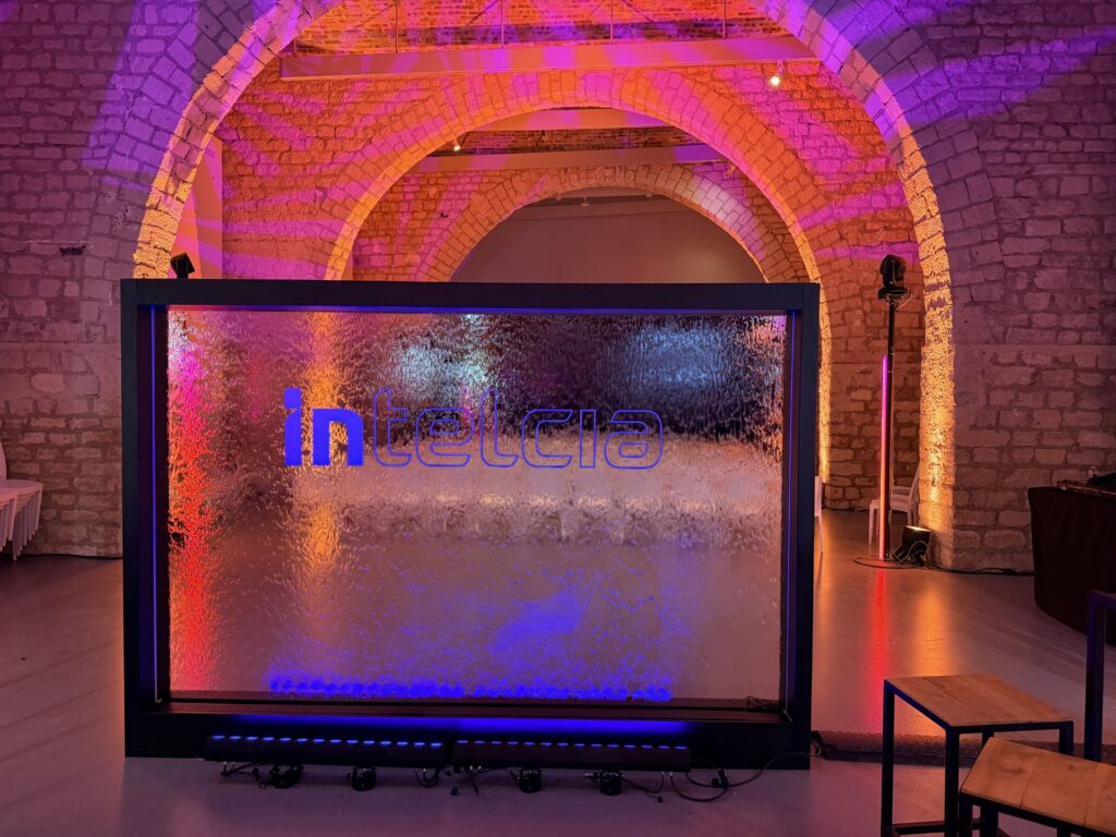 Grâce à la personnalisation (logo, message), le mur d’eau devient un véritable support de communication visuelle, élégant et différenciant.